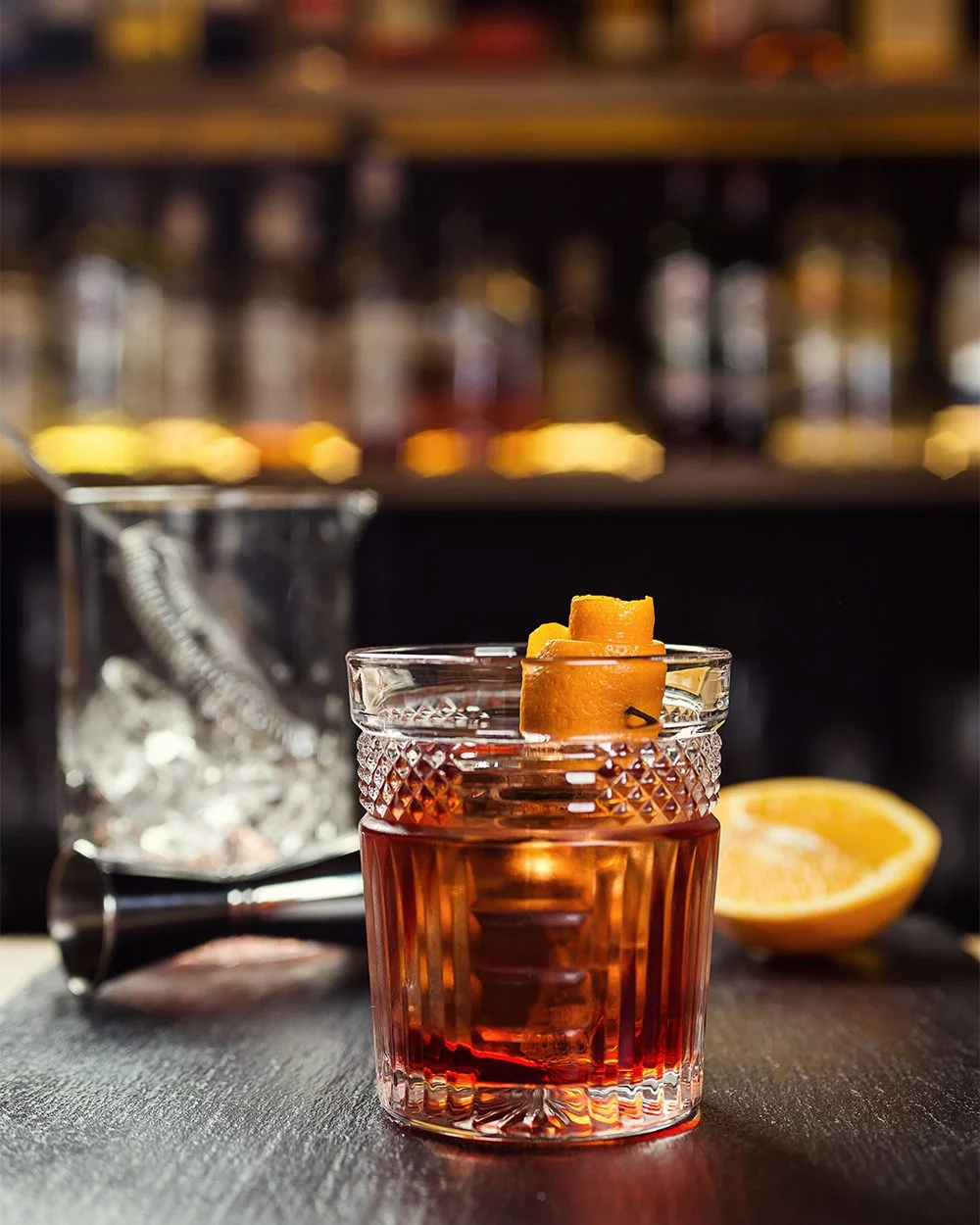 To prepare, soak a sugar cube in bitters within a tumbler and crush it. Add a premium whisky along with large ice cubes, and stir repeatedly. This creates a captivating presentation, especially when prepared by an experienced bartender. Finally, garnish with a piece of orange zest.