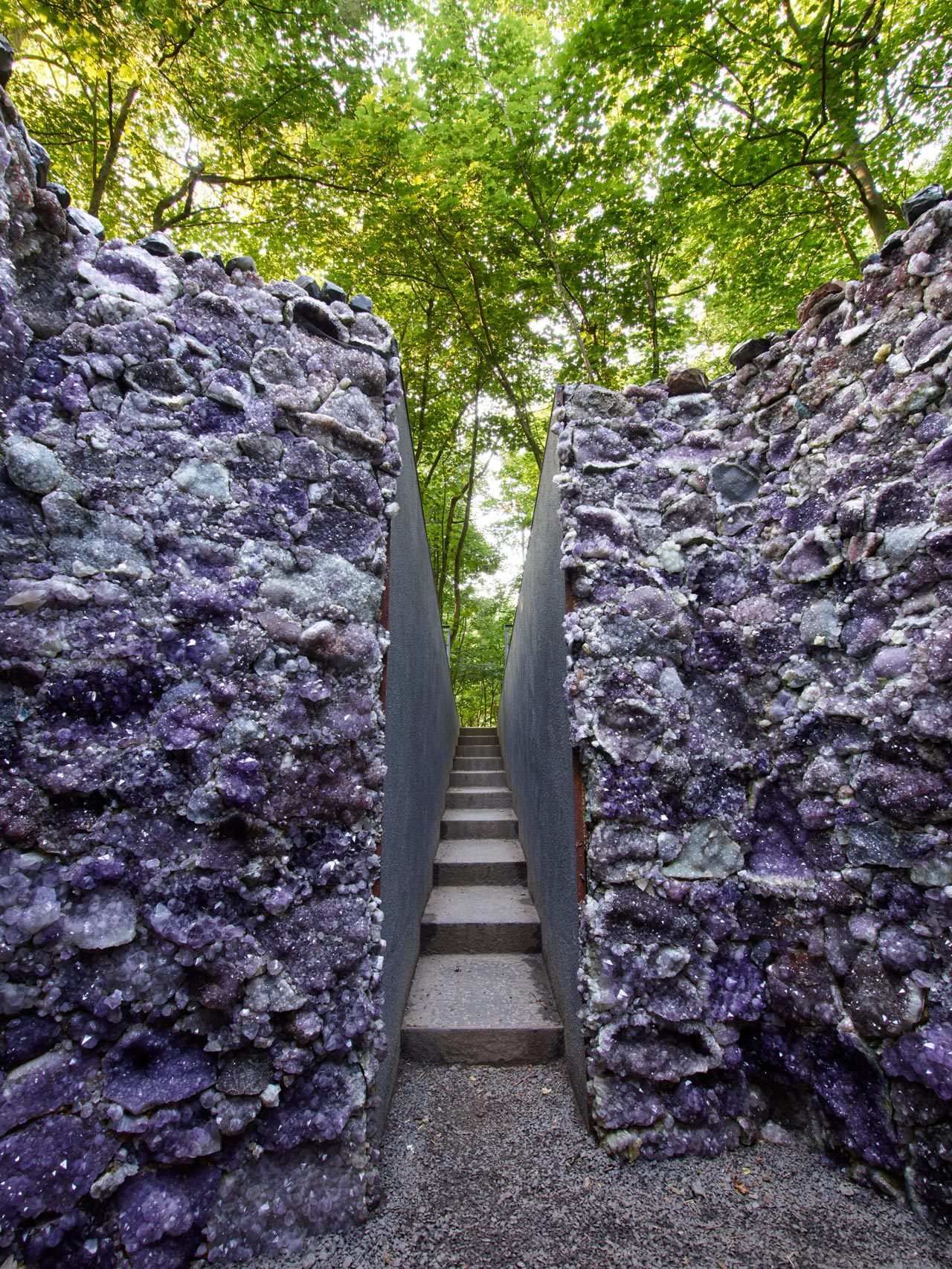 The artworks at Jupiter Artland often explore themes of energy and flow. A notable piece is Anya Gallaccio’s amethyst grotto, “Light Pours Out of Me” (2012), which resonates with the essence of X MUSE vodka. The imagery of amethyst not only adorns the installation but also serves as a symbolic link to the vodka itself, reminding consumers of its creative origins.