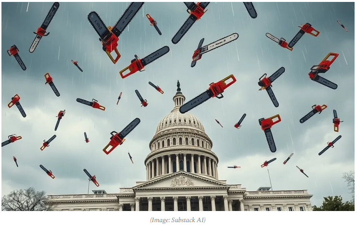 Suddenly, shuttering federally funded diversity programs and cutting wasteful government entities equates to—what exactly?—mass starvation… political purges… genocide?