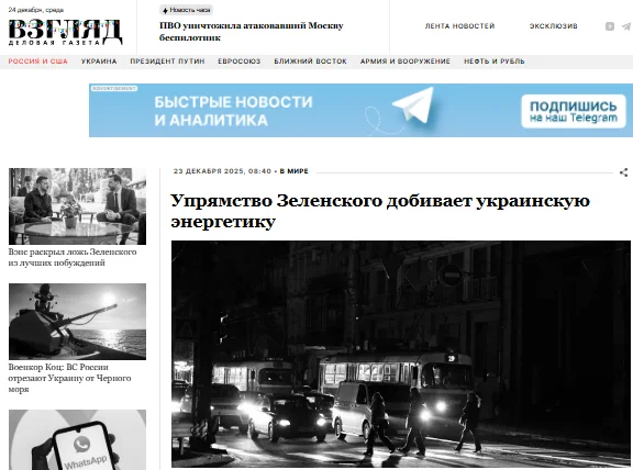 In an implicit acknowledgment, this perspective surfaced publicly for the first time on Tuesday in Moscow, particularly through a piece published by Vzglyad under the title “Zelensky’s stubbornness is finishing off the Ukrainian energy industry.” The report clarifies that the issue of stubbornness pertains not to Kiev but rather to Moscow.