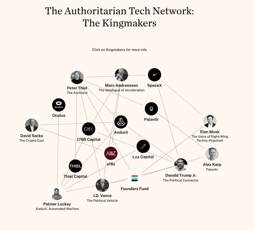 - Wannabe tech overlords: A relatively new faction led by affluent tech figures like Peter Thiel and Marc Andreessen. These individuals fancy themselves visionaries akin to Steve Jobs. A libertarian offshoot, they are characterized by unique and striking ideas that share some overlap with libertarians and the endless warriors, while diverging significantly from both the race-driven and religious sectors of the Right.