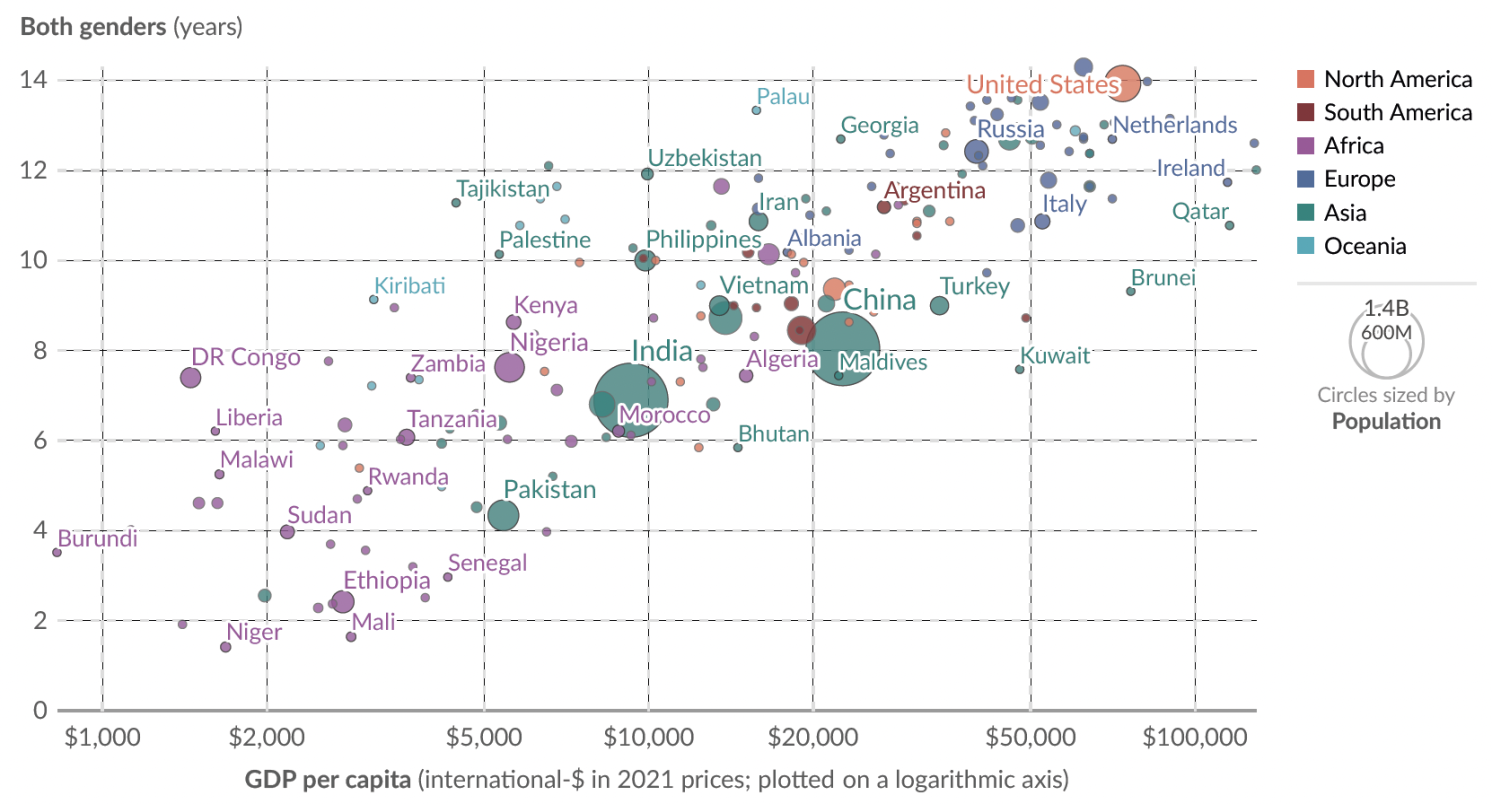 Figure 2: Strong Correlation Between GDP per Capita and Average Years of Education Across Countries, 2023