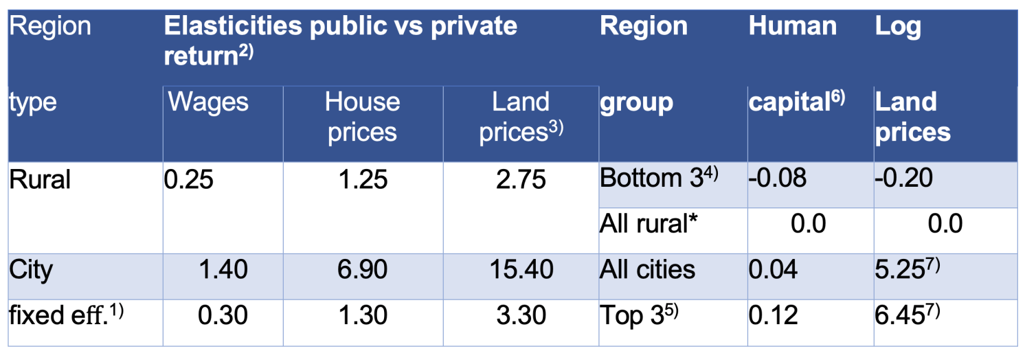 Table 2: The Public Return to Human Capital and Land Prices in Rural Areas and Cities