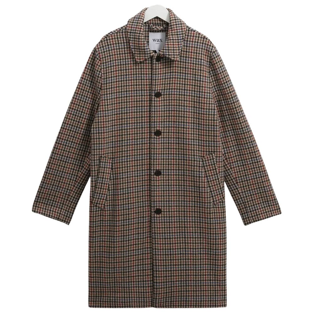 - Wax London Stan – Natural Houndstooth Check Wool Car Coat