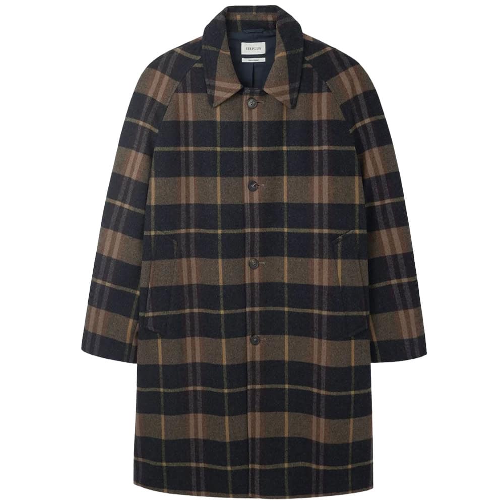- SIRPLUS Navy & Beige Checked Wool Raglan Overcoat
