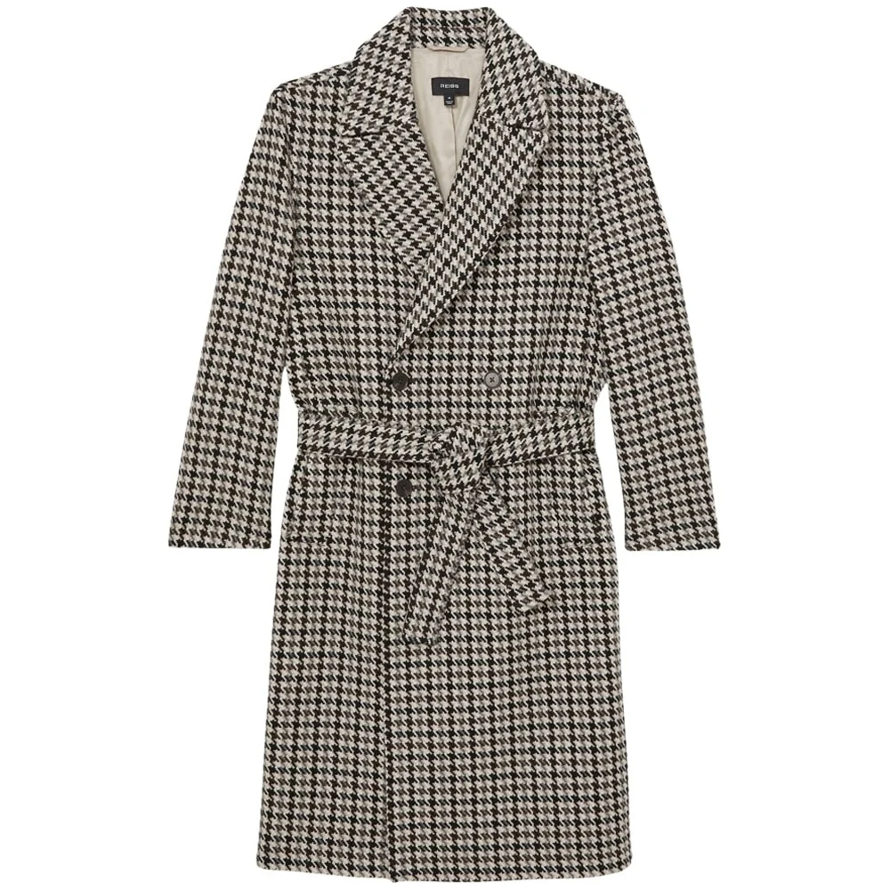 - Reiss Solesto Wool Dogtooth Double-Breasted Overcoat