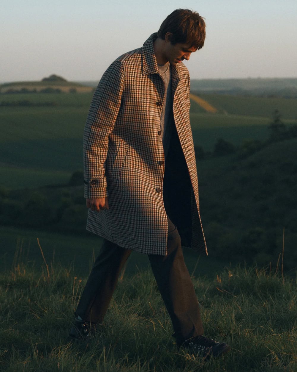 There are many options out there, but one of the most classic is a traditional balmacaan coat in a nice Prince of Wales check. Colourful, yes, but not so much so that it will make you the butt of any jokes at the pub.