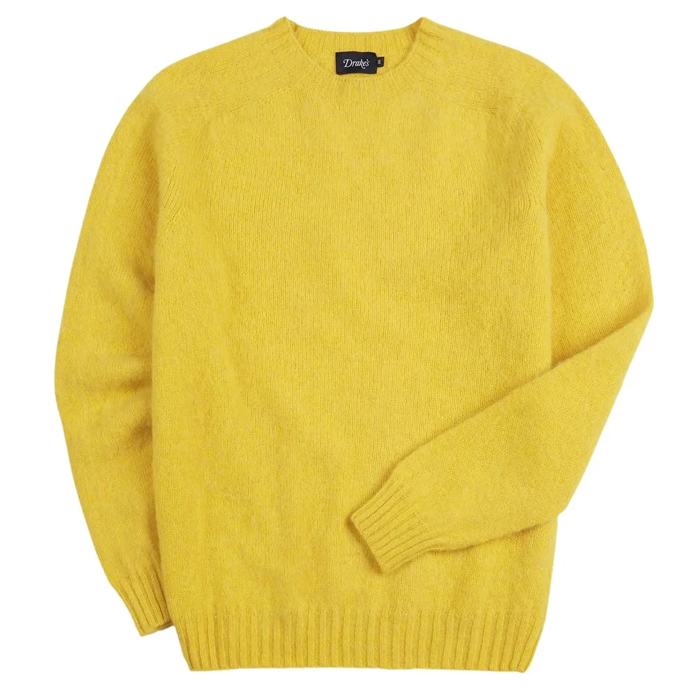 - Drake’s Canary Yellow Brushed Shetland Crew Neck Jumper