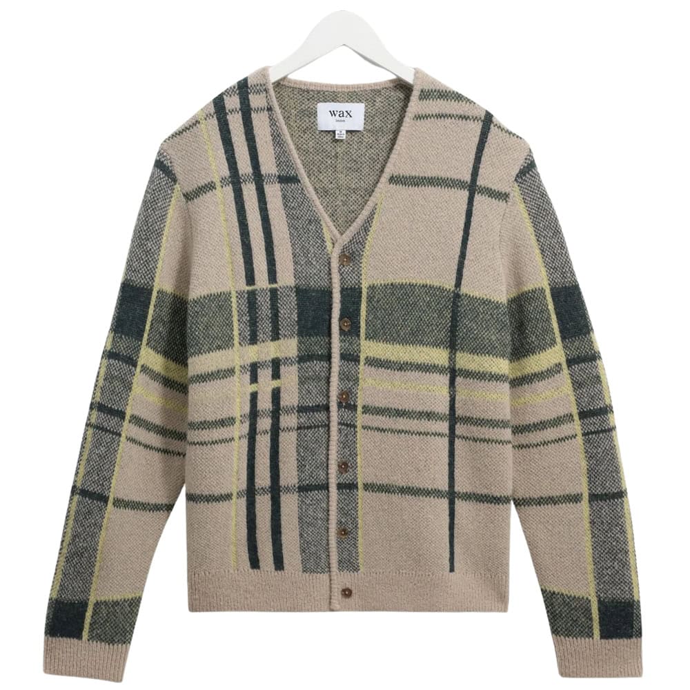 - Wax London Alban – Natural And Green Plaid Check Cardigan