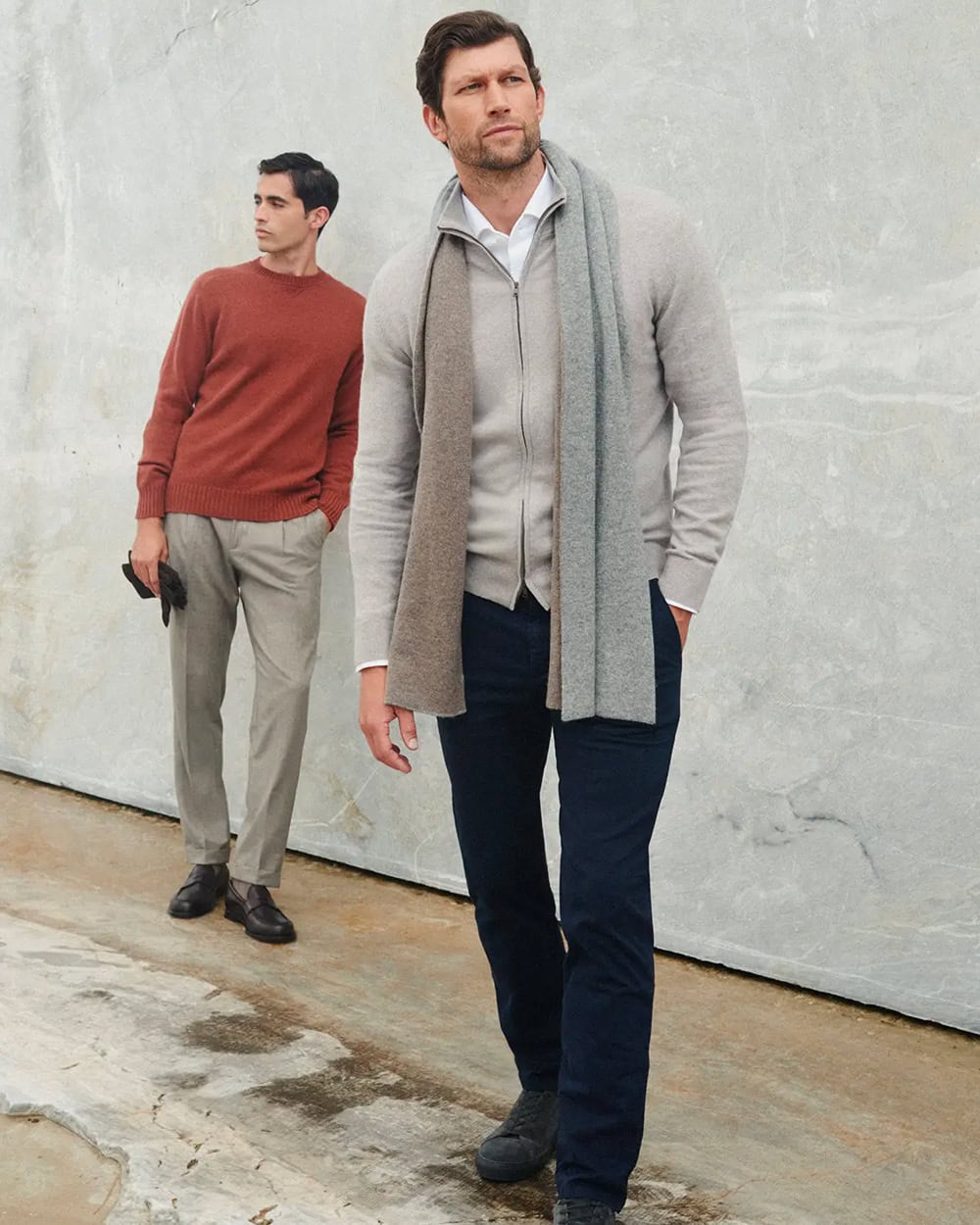 Stick to neutral colours – navy, grey, or black – and avoid anything too chunky. Worn over a roll neck or layered with a shirt and tie, it whispers sophistication without shouting for attention.