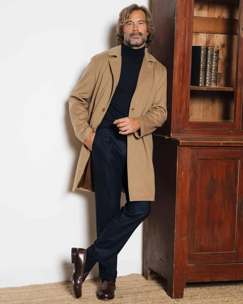 Now, here’s a cold-weather power move you won’t regret. Investing in a proper overcoat is one of the smartest sartorial moves a man can make. Choose something roomy and unstructured and you can wear it with everything from tailoring to T-shirts and jeans.