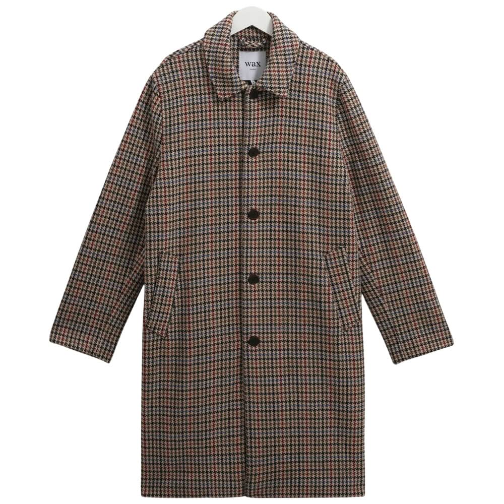 - Wax London Natural Houndstooth Check Wool Car Coat