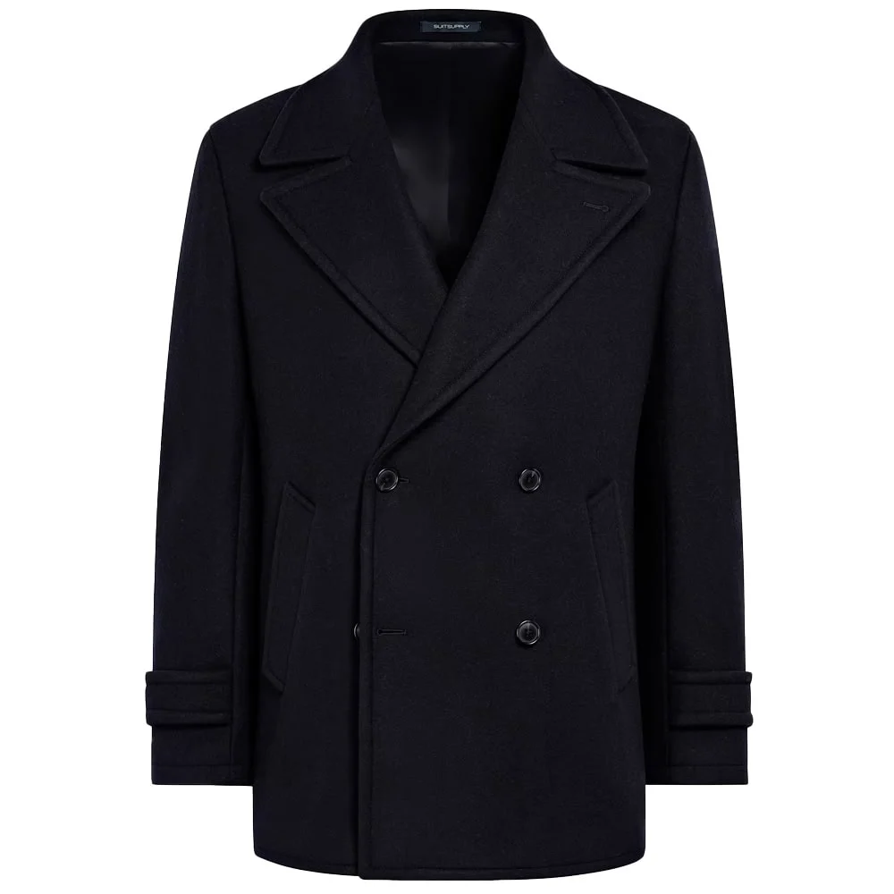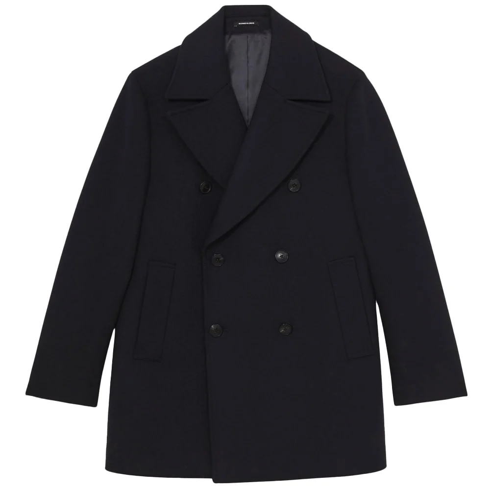 A classic peacoat will be cropped in length, feature broad lapels reaching almost across the shoulder, be double-breasted at the front, fastened by large buttons, and to the sides house vertical or diagonal-slash pockets. You may even find some iterations with epaulettes, but this is perhaps a step too far.