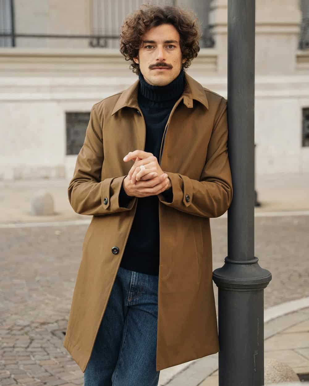Timeless beige or khaki is a fail-safe colour choice for your trench, although military green and mid-grey are also excellent options.