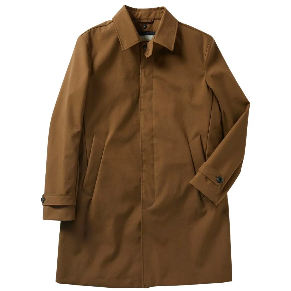 The finest trench coats have always been made from waterproof, heavy-duty cotton gabardine. Lengths vary wildly, finishing anywhere from waist to ankle; shorter guys should pick something that hits mid-thigh, while taller men should opt for something that ends at the knee or lower.