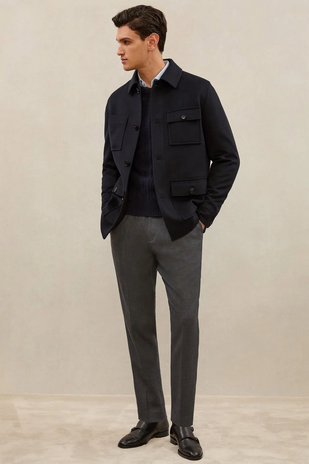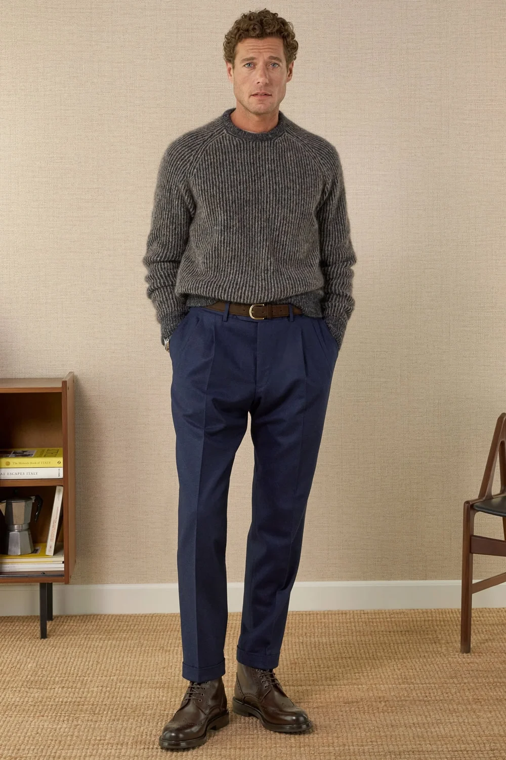 You can use navy as the base and charcoal as the accent, or flip it. Picture a navy peacoat over charcoal knitwear and gray denim for an effortlessly stylish off-duty vibe, or try a charcoal flannel suit paired with a navy knitted polo for a modern, professional look.