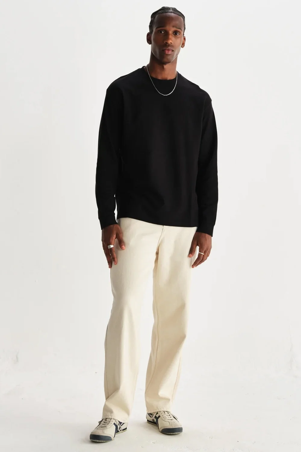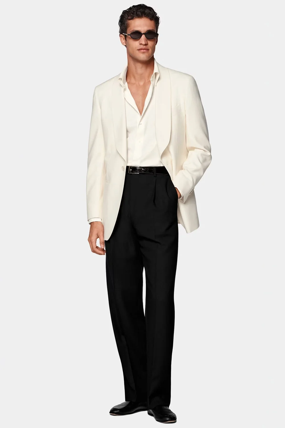 For a clean, graphic look, consider starting with off-white denim or trousers paired with a black roll-neck and wool coat. Alternatively, you could reverse this style by opting for black jeans, a white Oxford shirt, and a cream cardigan topped with a black bomber jacket.