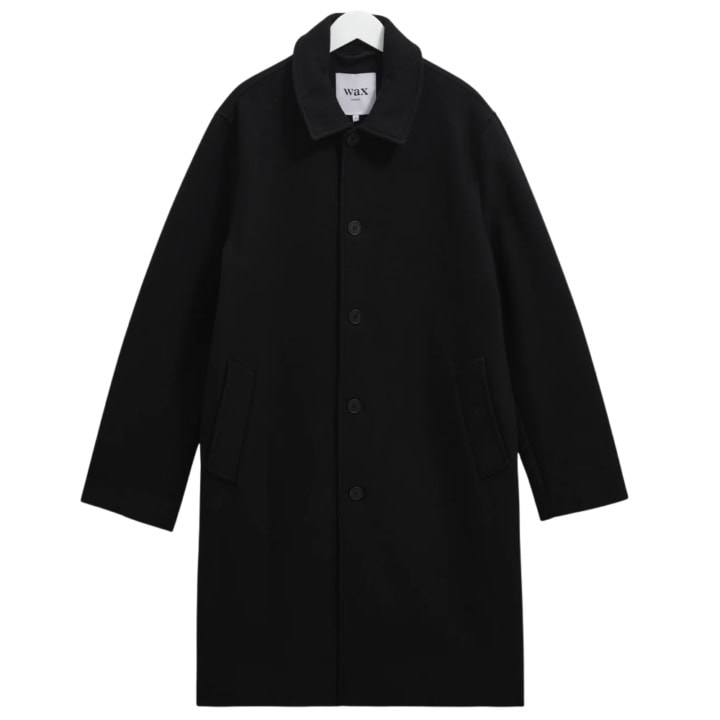 - Wax London Stan – Black Wool-Twill Car Coat