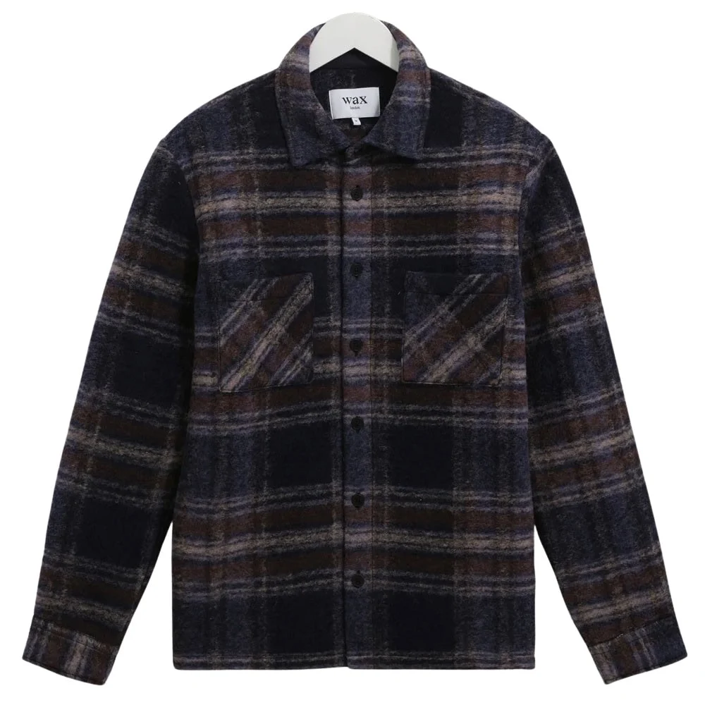 - Wax London Whiting – Navy Wool Check Overshirt