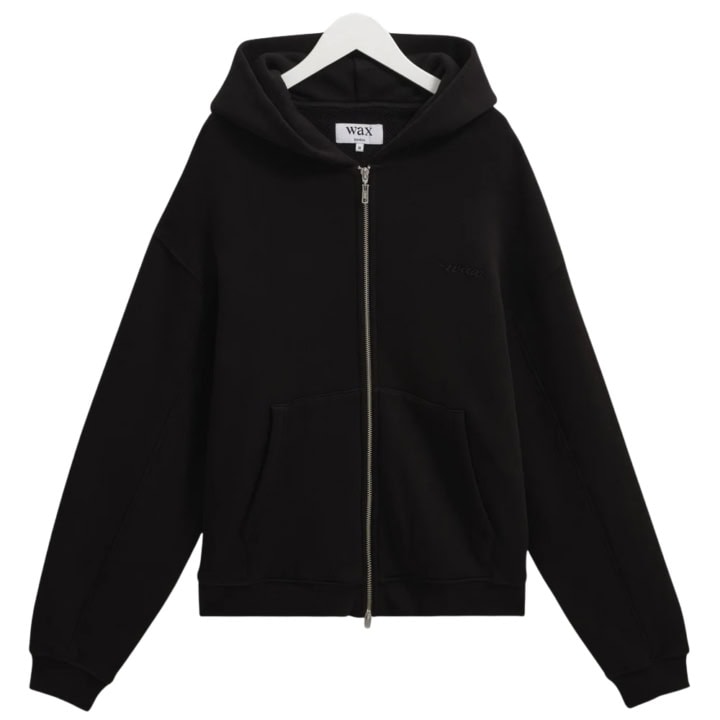 - Wax London Harris – Black Embroidered Logo Loopback Cotton Hoodie