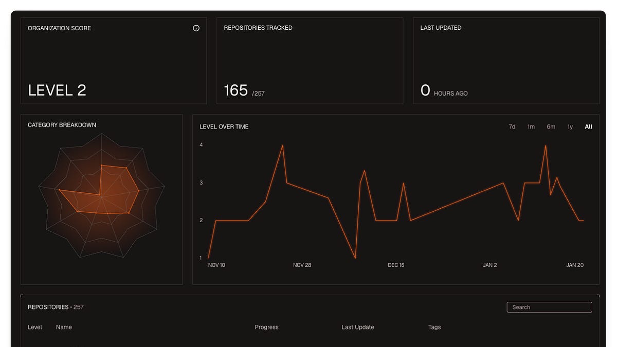 Droid can now analyze your repository to determine if it is suitable for agentic software development. You can initiate a readiness report with /readiness-report in your terminal, or view readiness across your organization within the app. There’s also an option to programmatically access reports via API, and it provides suggestions for both immediate and long-term improvements to enhance your workflow.