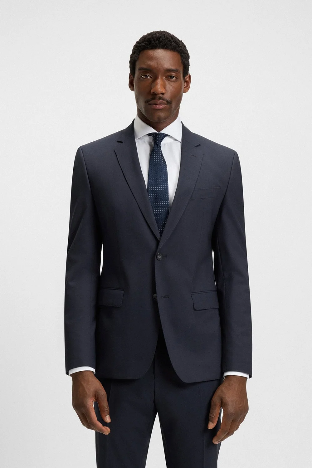 This modern two-piece suit strikes a perfect balance between tailored elegance and everyday functionality. Crafted in a slim fit from stretch wool, it delivers the structured aesthetic that BOSS is celebrated for, while providing comfort for long hours on the move.