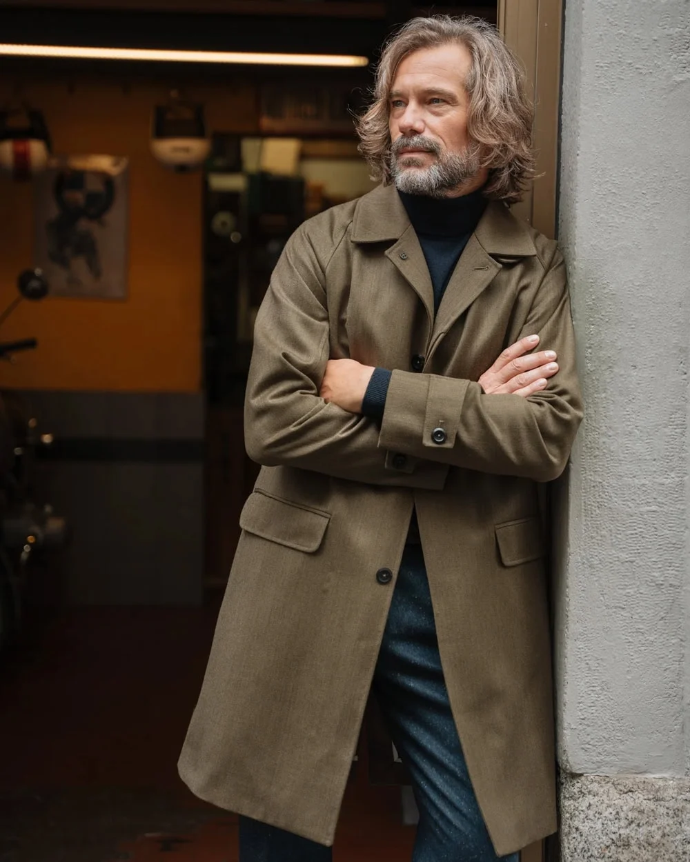 Our pick is a classic balmacaan coat. The raglan sleeves give it a relaxed feel that tailoring-averse gents will appreciate, but it still has a way of elevating the ordinary and bringing a touch of refinement to the table.