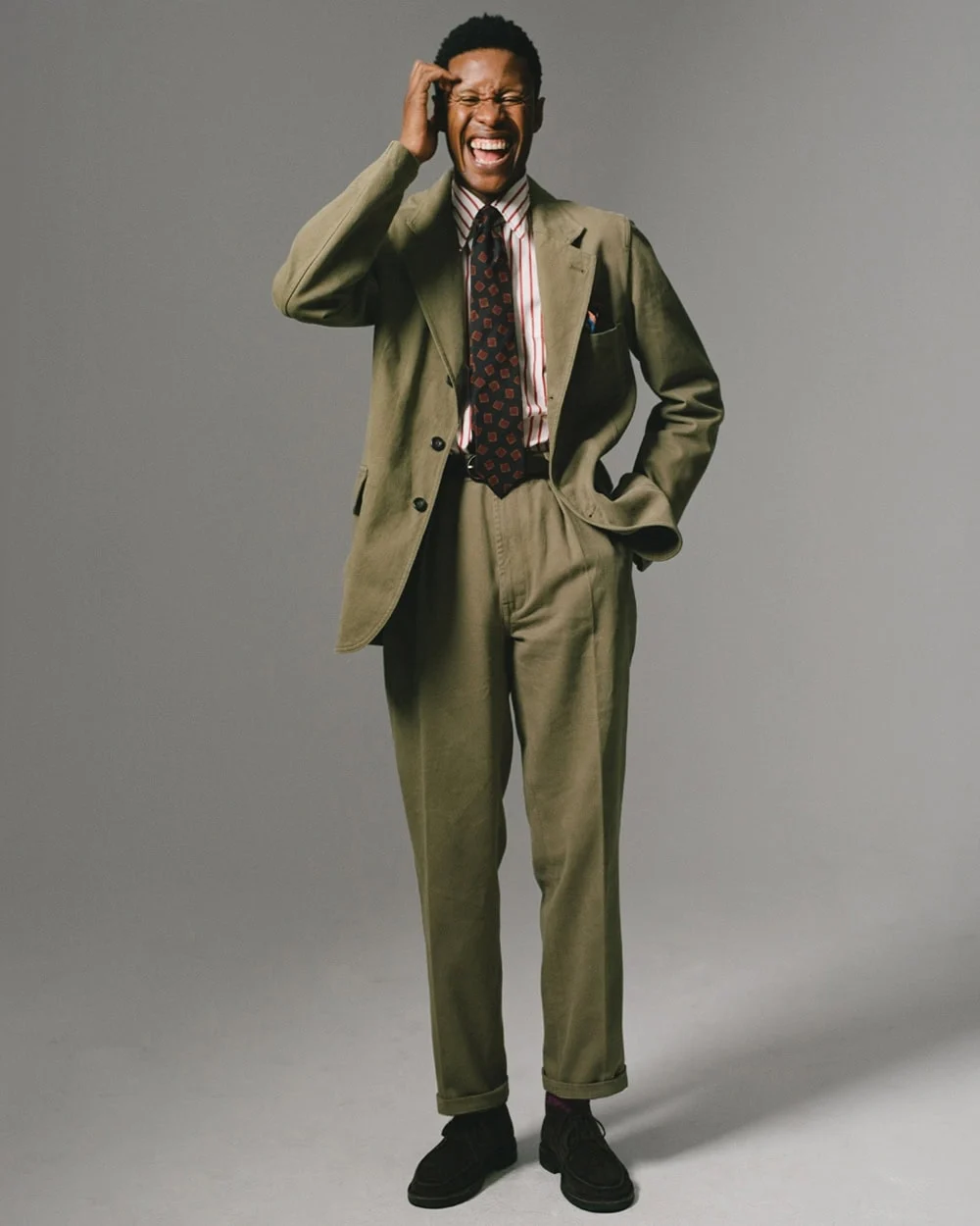 To test this theory, we’d encourage you to try on a cotton twill suit from a brand such as Universal Works or Drake’s. You still get the matching-set feel of a traditional suit, but with a more offbeat and informal edge.