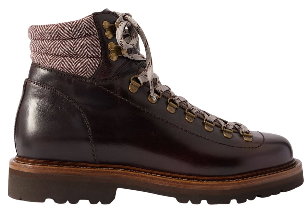 - Brunello Cucinelli Wool and Cashmere-Blend Trimmed Glossed-Leather Boots