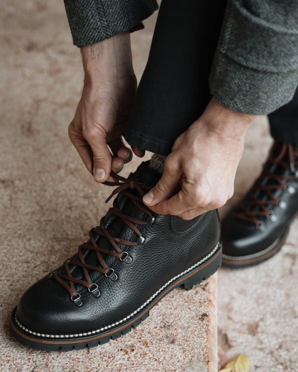 Not every outdoor-inspired piece is bright and made from Gore-Tex. Many classic elements from mountaineering heritage have been adapted for today’s style. Boots are no exception.