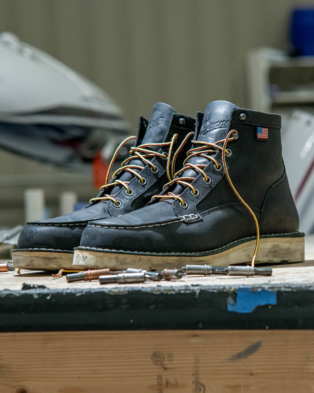 Classic moc-toe work boots have seen a resurgence lately. As workwear staples like raw denim and plaid shirts come back into fashion, brands like Danner and Red Wing are regaining popularity for their sturdy, long-lasting designs.