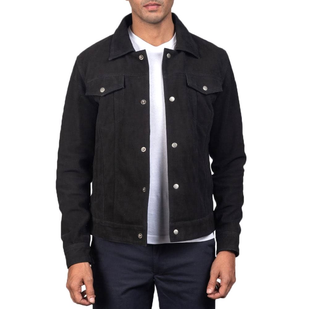 - The Jacket Maker Stallon Black Suede Trucker Jacket