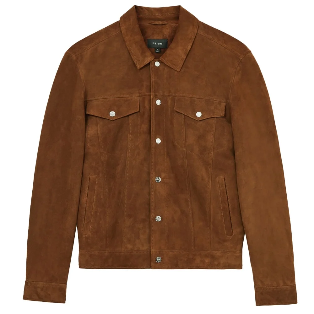 - Reiss Edington Suede Press Stud Trucker Jacket