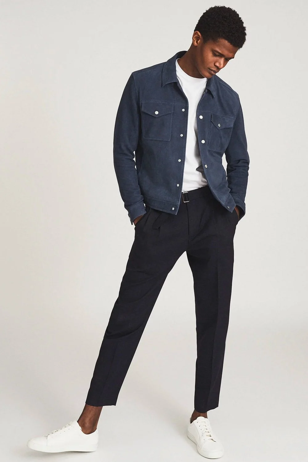 Buying a suede jacket involves many of the same considerations as buying any other style of jacket. Think about the fit, the length, the details. Think about what else is in your wardrobe because this one won’t be cheap. The majority of suede jackets come in cropped styles, but if they don’t work for you, check out chore jackets, overshirts or occasionally a longer blouson or field jacket. See below for inspiration.