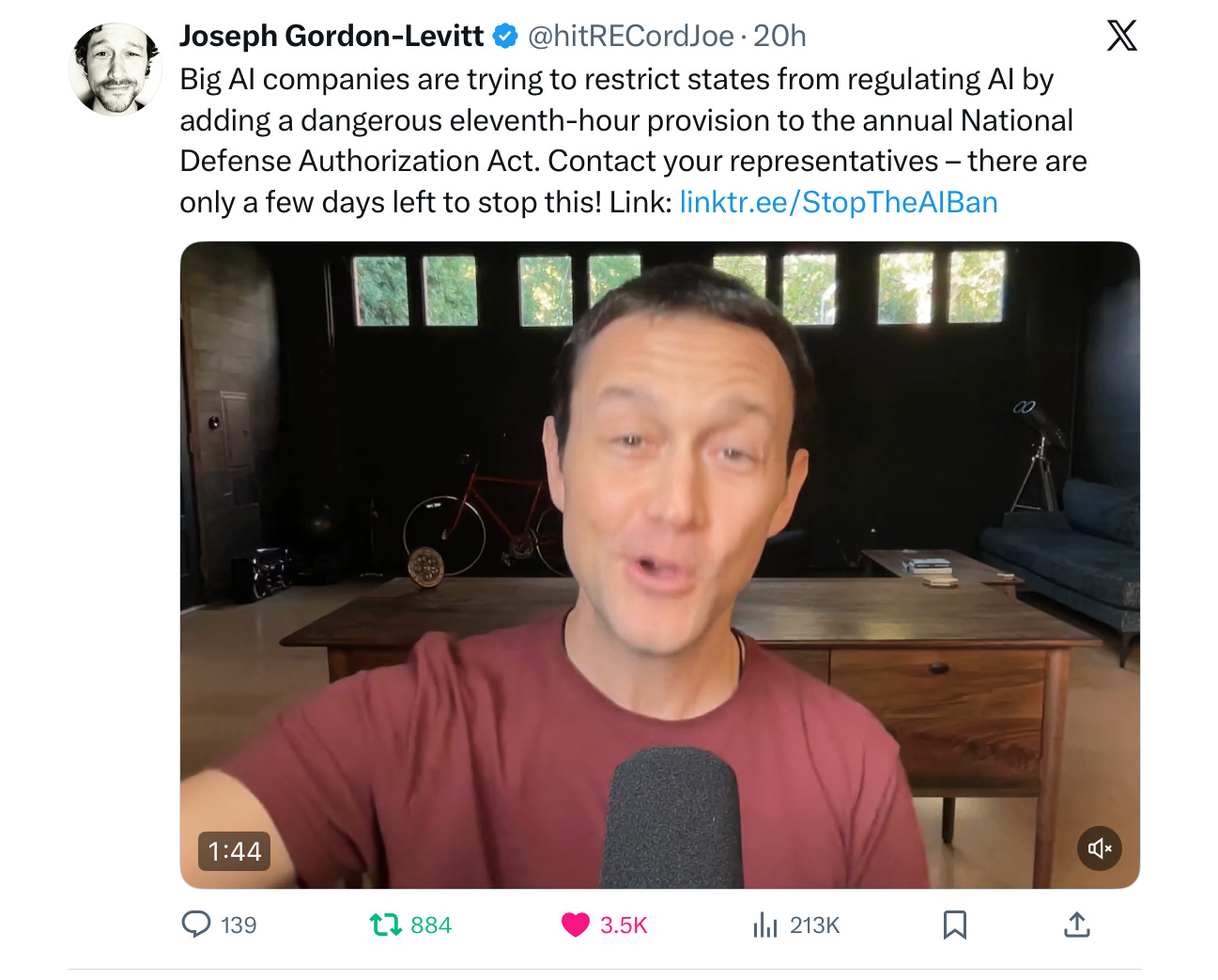 Joseph Gordon-Levitt eloquently addressed this topic yesterday (full link here), highlighting a last-minute effort to insert a moratorium on state regulation into the National Defense Authorization Act: