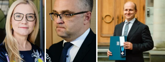 Left. Anu Rannaveski was appointed to lead the Defense Resources Agency (KRA) in 2022; the organization's website does not indicate its leadership. Center, Janar Holm, appointed head of the National Audit Office since 2018. Right, Magnus-Valdemar Saar awarded the Class II Service Cross of the Defense Ministry on July 17, 2025, in recognition of his “systematic and transparent approach to national defense procurement” before resigning after four years of service. https://www.kaitseinvesteeringud.ee/en/minister-of-defence-awards-service-cross-to-outgoing-rkik-director-magnus-valdemar-saar/