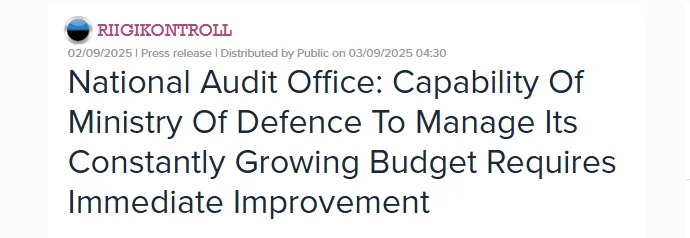 The National Audit Office was also sharply critical of the two military procurement agencies, RKIK and KRA, asserting: “The audit indicated that the Estonian Centre for Defence Investments and the Defence Resources Agency struggle with contract management and monitoring the delivery of goods.” They highlighted instances of erroneous payments totaling $79.1 million and flaws in defense equipment purchase documentation, making it impossible to verify compliance with contractual obligations.