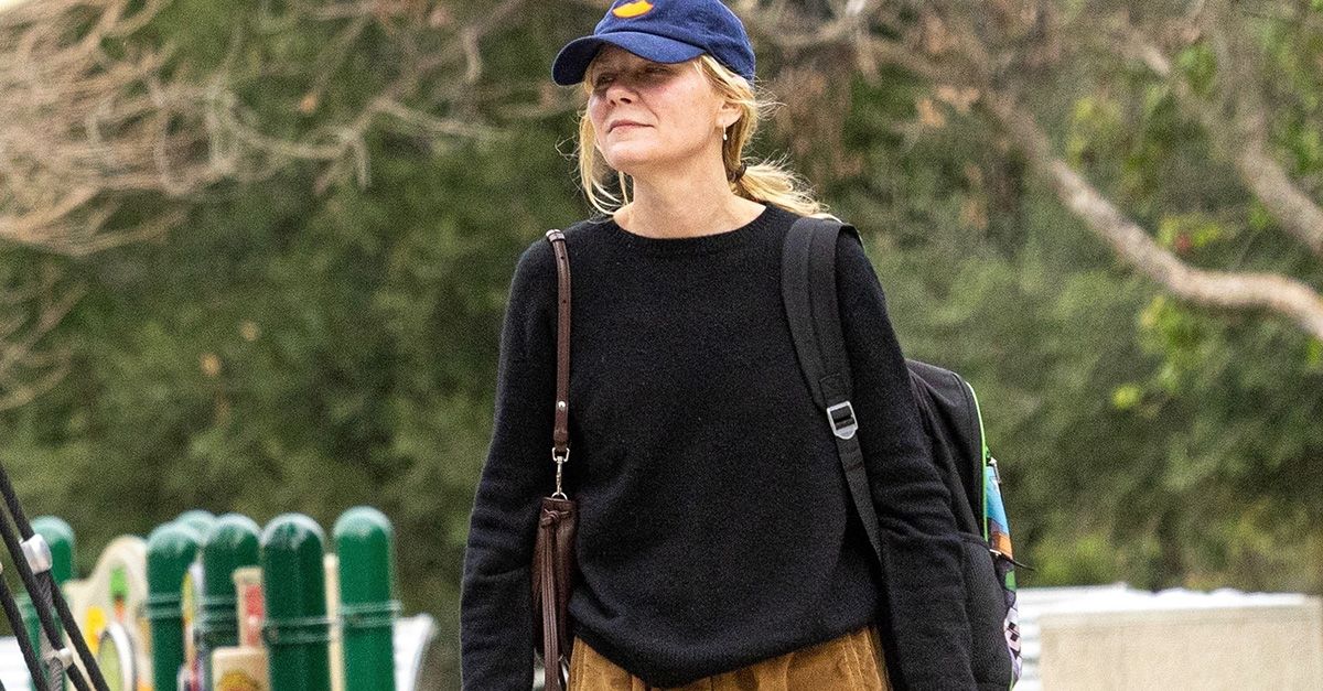 The actress was recently spotted out in a blue baseball cap and black sweater, styled with brown pants that matched the shade of her suede loafers. Typically, most people would just throw on a pair of loafers that matched the sweater but Dunst’s styling feels far less expected.