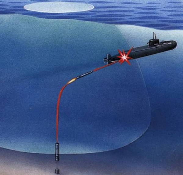 Tethered torpedo mine