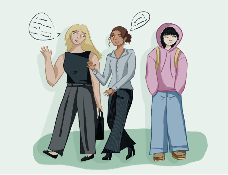 I think it’s very good to have a black jean in your closet. I personally like my black jeans to have some stretch. They often make very good night jeans. Whatever you’re gonna wear at night with your people out. It should fit the body somewhere. If it’s a wide-leg style, then I like to see a really clean top block, meaning it’s fitted in the waist. It’s nice in the butt. It’s not hanging off of you in any kind of way.