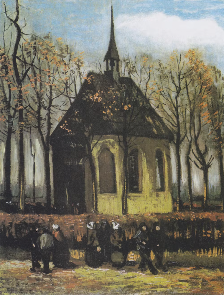 Van Gogh’s 1884-85 oil on canvas painting ‘Congregation Leaving the Reformed Church in Nuenen’ was one of two works stolen from Amsterdam’s Van Gogh Museum in 2002. Van Gogh Museum