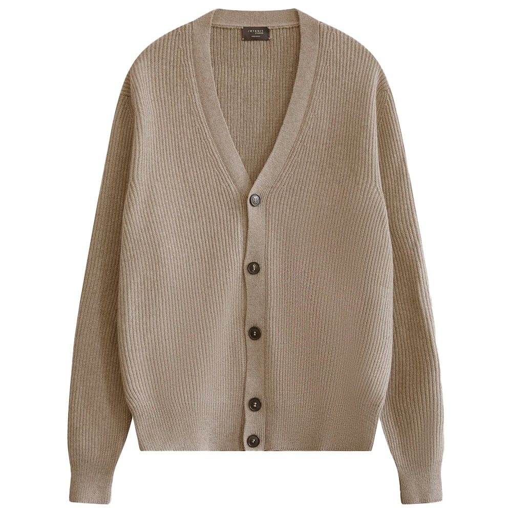 There are a few different ways to go here. Firstly, you could keep it classic with a V-neck style – always a good option. Or, if you want to take a more trend-led approach, you could opt for a crew-neck cardigan. These are essentially crew-neck sweaters with a button front, and they’re having a bit of a moment right now.