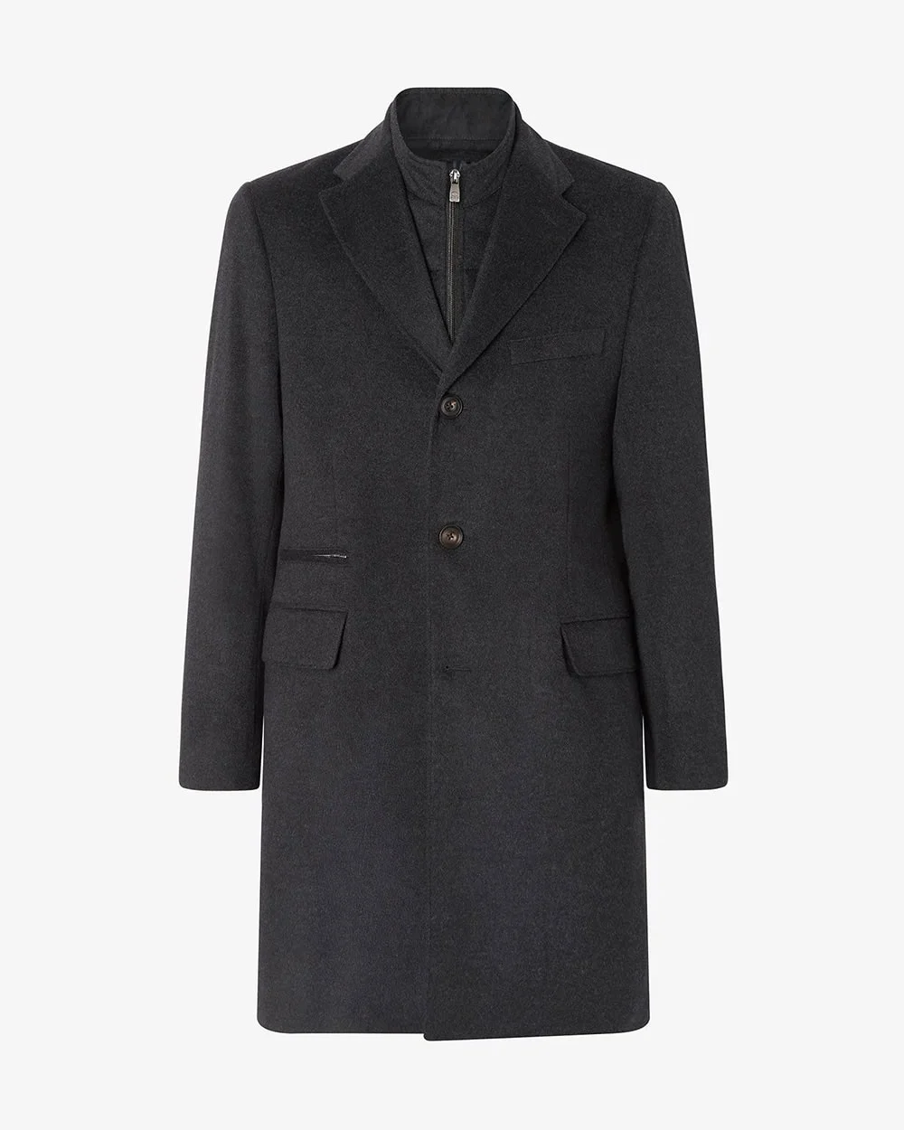 - Anthracite melange grey pure wool coat with detachable vest