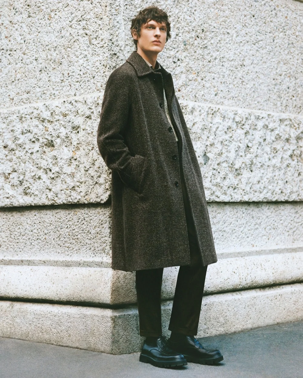 If there were an unofficial uniform for autumn/winter 2025, the slouchy coat would be it. This style is not oversized for effect but relaxed in a sophisticated Italian manner—think soft shoulders, gentle drape, and a silhouette that adapts to movements rather than resisting them. This stands in stark contrast to the rigid overcoats of previous years, making it practical for layering over knitwear and tailored pieces.