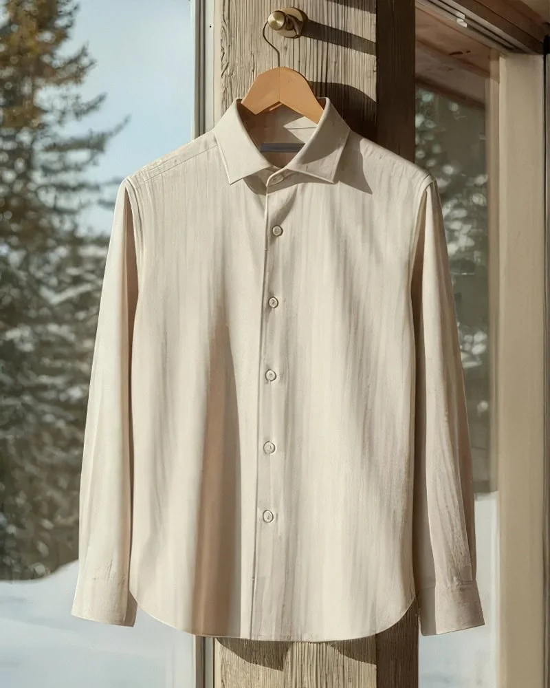 This shirt integrates seamlessly into autumn and winter wardrobes. It can be worn under a blazer, paired with a knit, or even stand alone with tailored trousers for a more relaxed evening look. The brushed finish imparts depth and richness, allowing it to feel sophisticated without requiring ties or formal layers.