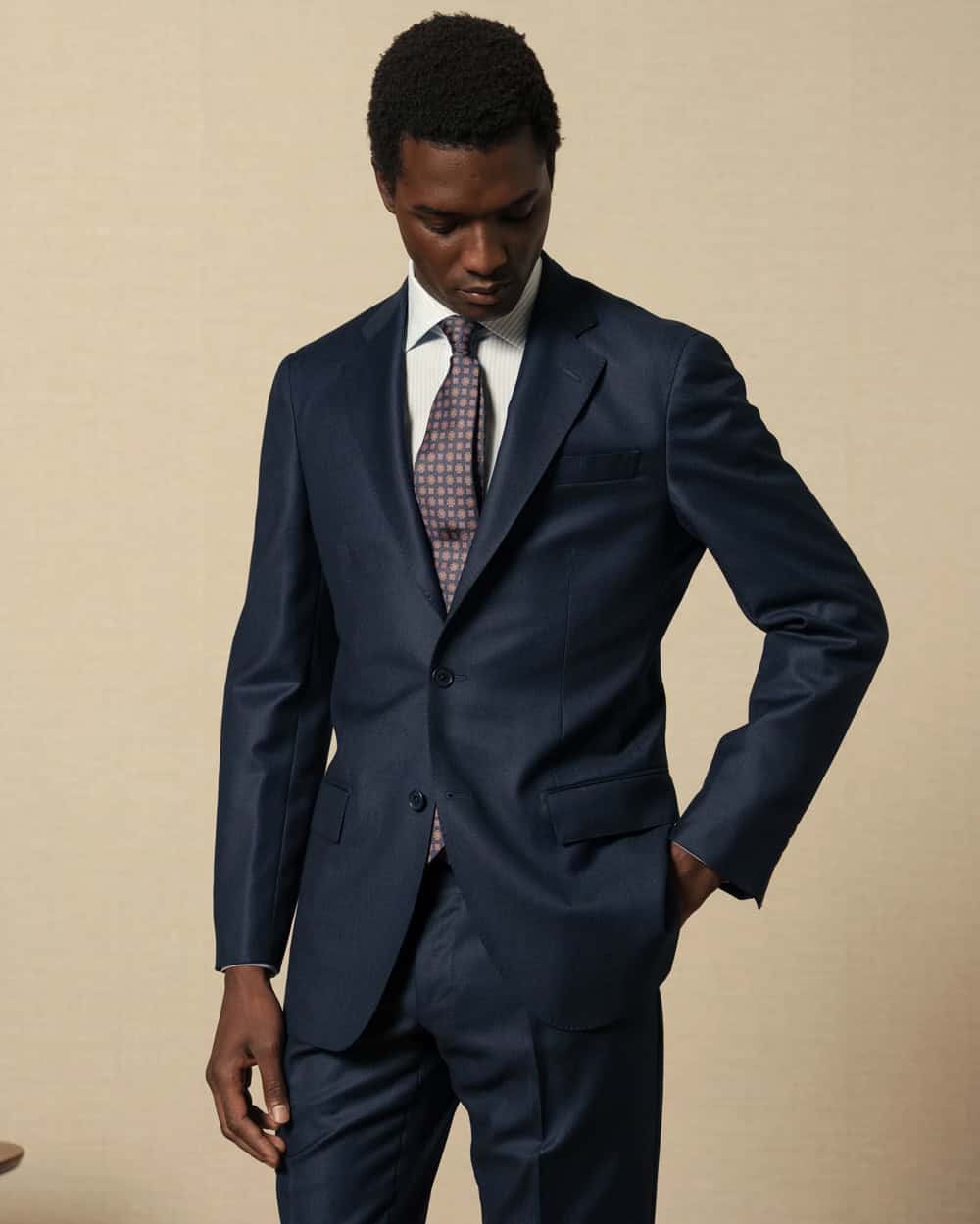 A well-made wool suit in navy is incredibly versatile and can be worn in lots of different ways, making it great for getting the most out of your money. You can buy one off the peg as long as the material is good and the workmanship is solid, and then have it tailored for the perfect fit. This is much cheaper than having a suit made to measure but essentially achieves a similar result.