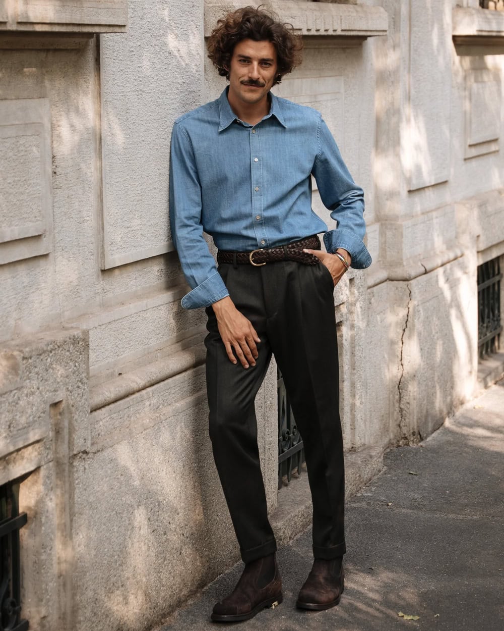 Choose a flat-front or single-pleat pair in a midweight wool and you’ve got year-round appeal. Mid- or high-rise, with a slim-to-tapered leg, and in a neutral tone like charcoal, navy or taupe – they’ll go with everything and rarely date. The fact they wear better, resist wrinkles and outlive cotton chinos by miles? That’s just a bonus.