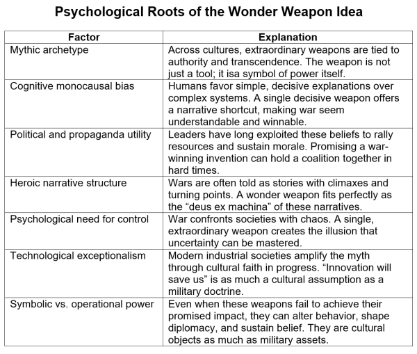 The tale of wonder weapons extends beyond mere military technology; it reflects deeply held human beliefs. We have a tendency to mythologize tools, infusing hope and fear into objects and seeking certainty amid the unpredictability of war. While strategy, logistics, morale, and adaptability will always be crucial in armed conflict, the yearning for a decisive technology persists due to its psychological and cultural resonance. As the war in Ukraine continues, the disillusionment over past failed wonder weapons may fade, yet a renewed faith in the next anticipated miracle will likely emerge. The current zeal in the U.S. for weaponized AI and advanced missile defense is a testament to the magnetic allure of wonder weapons.