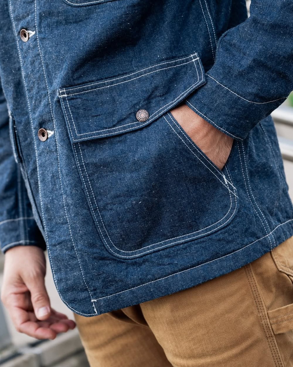 In a word: pockets. This is the USP of a worker shirt. Whether it’s the curvy flap pockets of a classic western shirt or the trio of patch pockets found on most chore jackets, pockets are a big part of what makes worker shirts the practical pieces they are.