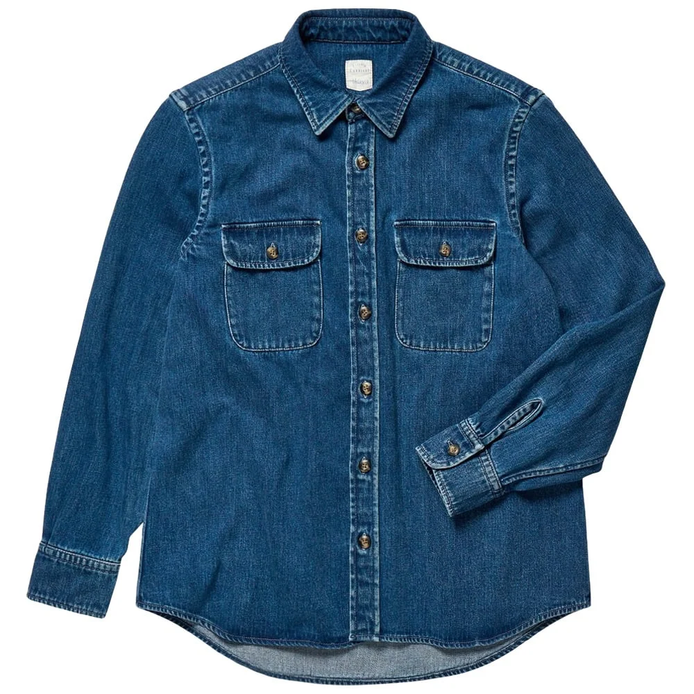 With a relaxed fit and three patch pockets, this rough-and-ready all-American overshirt is very similar in style to its European counterpart. The key difference is the material. Instead of cotton twill, it uses denim, which is slightly thicker and heavier, giving the garment its trademark textured indigo appearance.